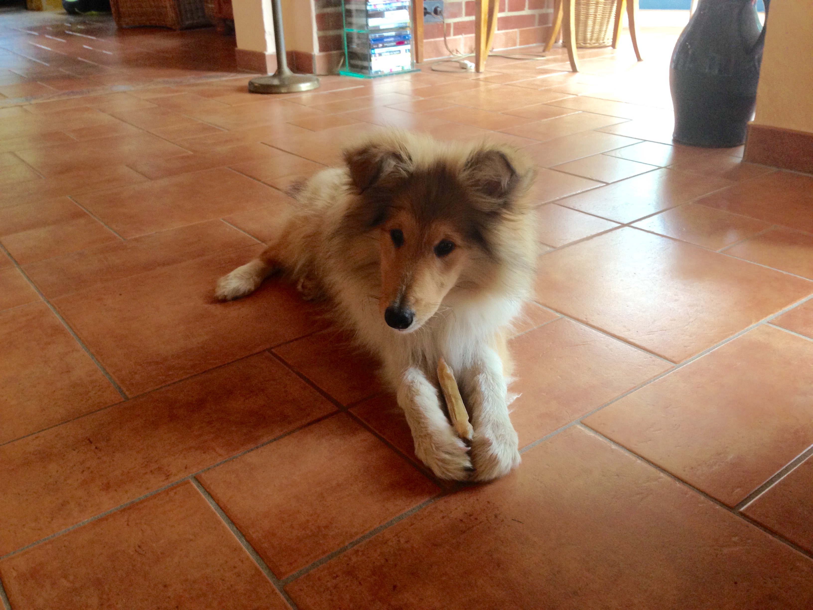 aus der Literatur wissen wir, dass der Collie an sich äußerst gelehrig ist, seinen Menschen gefallen will und überhaupt ganz toll ist. Dina erfüllt diese ihrer Rasse nachgesagten Eigenschaften weitgehend, wenn auch nicht immer, wenn es ihre Chefs gerade wollen. „Sitz“ und „Platz“ sind kein Problem, an der Leine gehen auch nicht. Allerdings läuft sie noch lieber ohne Leine, was Mensch und Hund sehr viel angenehmer ist, zumal sie sich so gut wie nie weit entfernt.